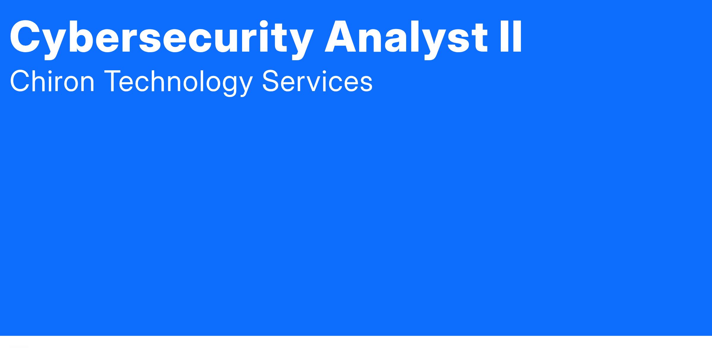 Chiron Technology Services, Inc. currently has a Cybersecurity Analyst II career opportunity in the Annapolis Junction, MD area.