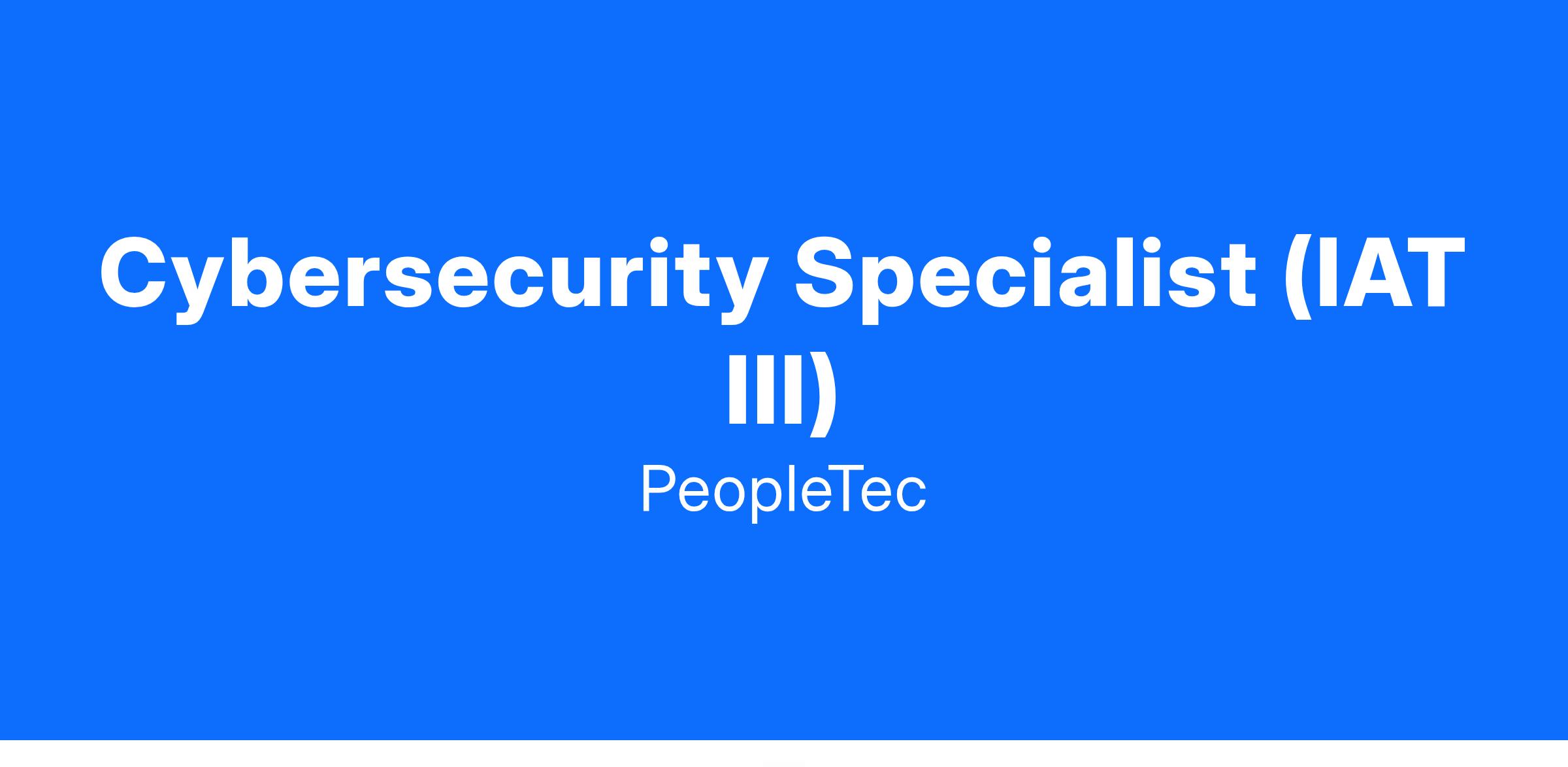 PeopleTec is currently seeking a Cybersecurity Specialist (IAT III) to support our Huntsville, AL location.