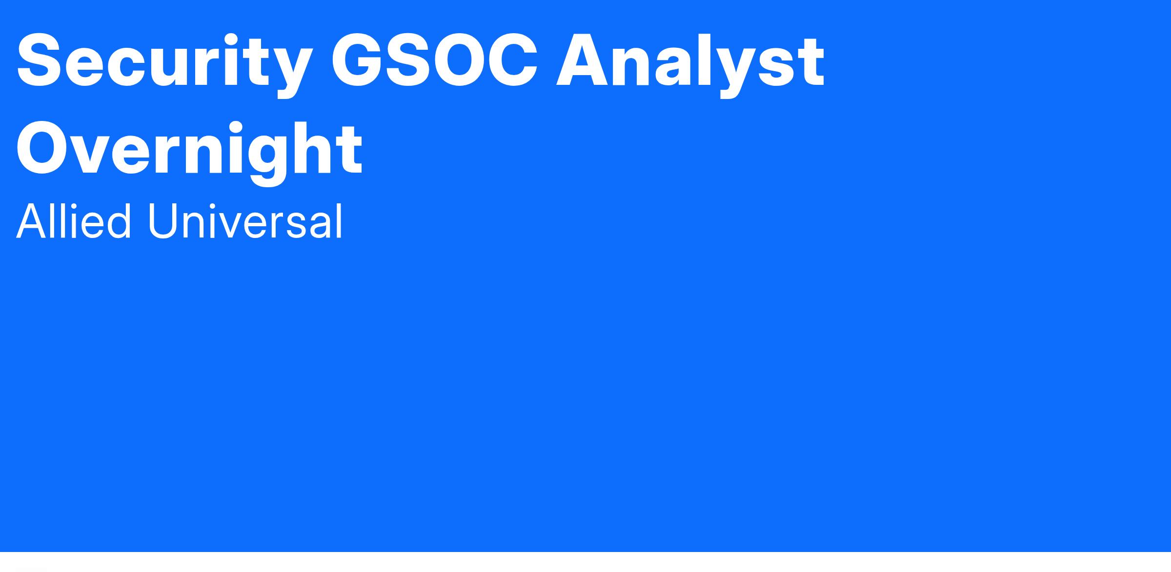 Allied Universal® is hiring a GSOC Analyst. The Global Security Operations Center (GSOC) Analyst supports the Global Security Management and other business function leaders for a high-profile customer. This role executes the various core functions of the GSOC to include, but not limited to incident recognition/escalation, intelligence analysis, emergency response, product security, and physical security. Analysts act as partners who work closely with teams across the security organization and the wider business to understand information requirements, deliver timely analysis, and present key insights to internal stakeholders.