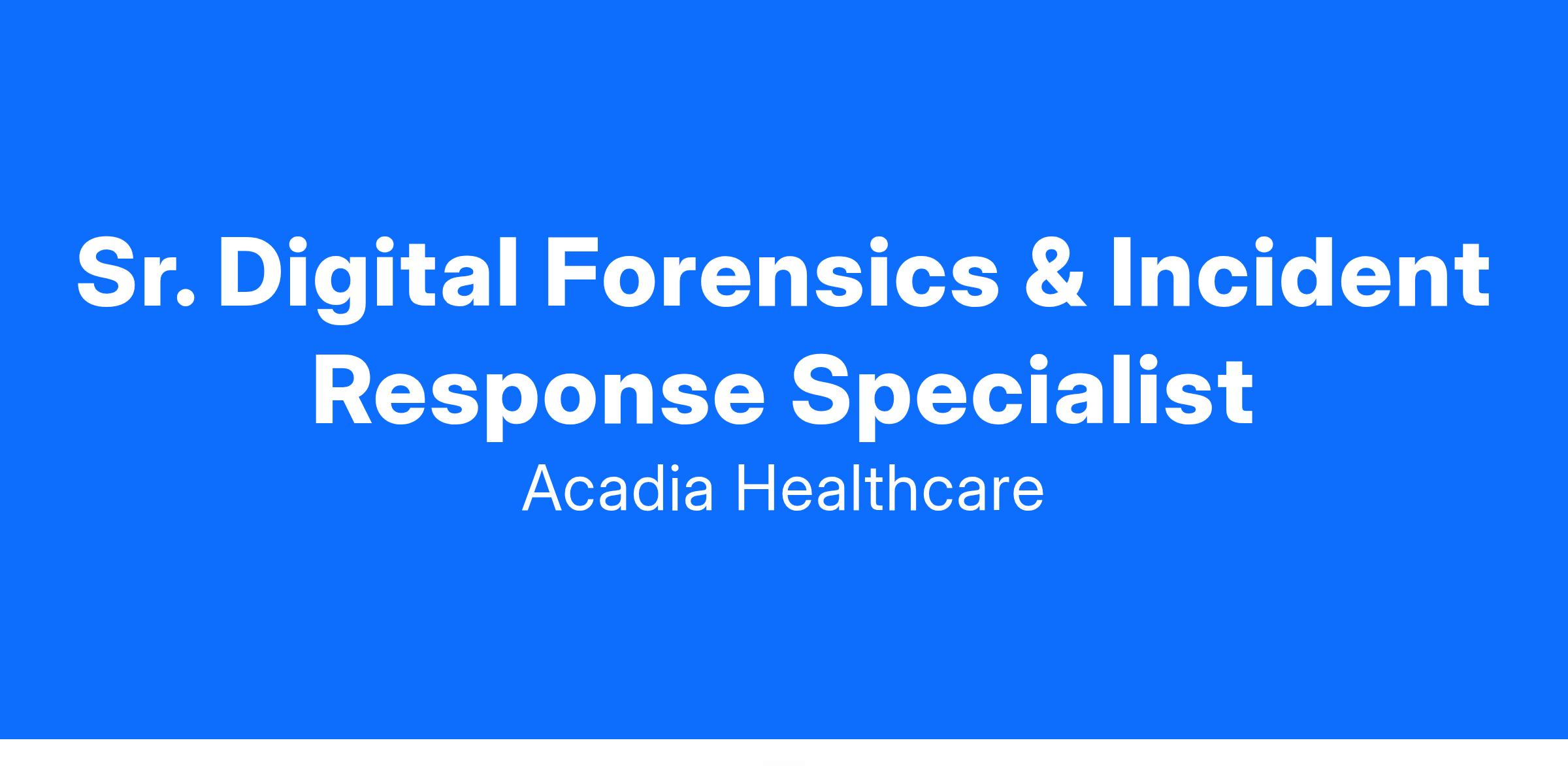 We are seeking a skilled Senior DFIR Specialist to join our team in Franklin, TN. The first 90 days in this role will be fully in-person to ensure comprehensive onboarding and training. After the initial period, the position will transition to a hybrid model, with 2 days remote and 3 days in the office each week.